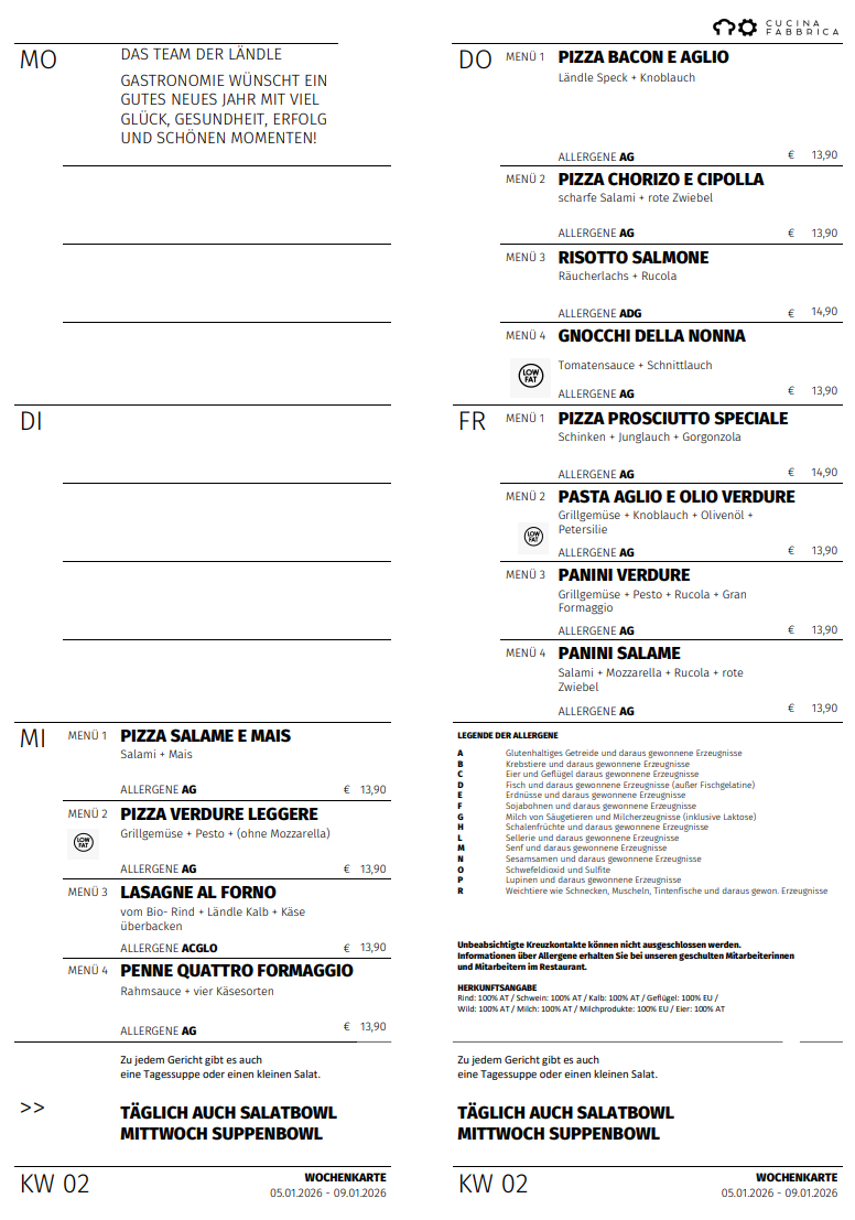 Die geliebte italienische Küche kombiniert mit regionalen Zutaten: Das ist Bella Italia auf Ländle-Art! In der Cucina Fabbrica verbinden wir das Beste aus der traditionellen italienischen Küche mit hochwertigen regionalen und saisonalen Zutaten. Ob Pizza, Gnocchi, Risotto oder Pasta: bei uns findet ganz bestimmt jeder Italien-Liebhaber seinen ganz persönlichen Favoriten.