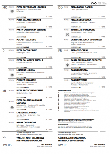 auch die jeweiligen Tagesgerichte.